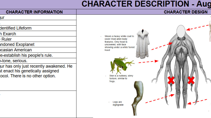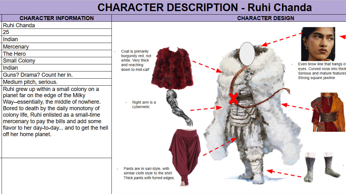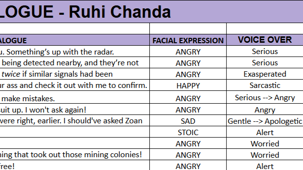 Additionally, a Voice-Over Actor Casting Document was designed to specifically assist with casting direction for individual characters based on culture, age, and gender expectations.