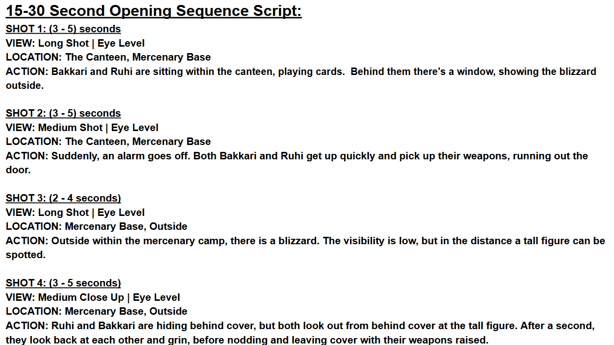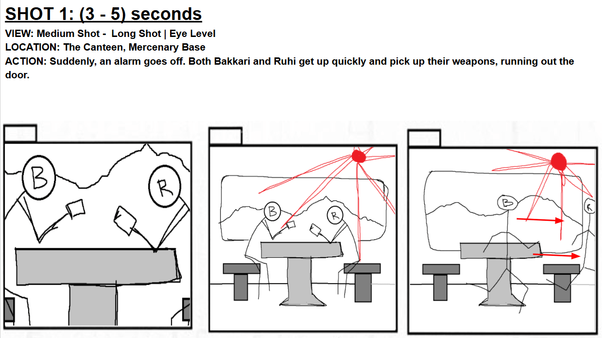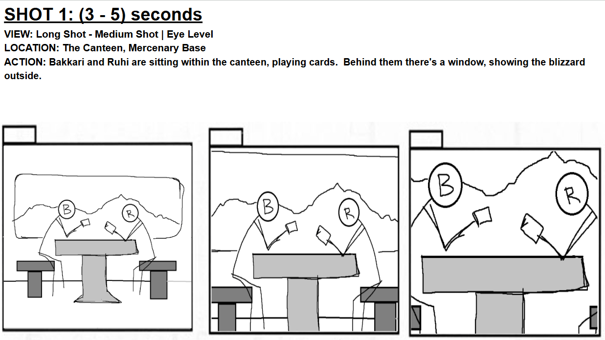 - Considered any potential narrations done by NPCs or main characters when designing specific storyboard beats.